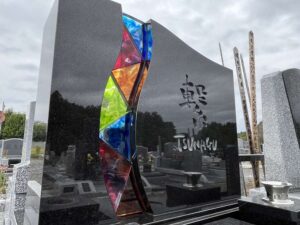 お話を重ねる中で選ばれたのは、黒系の御影石を基調とし、ステンドグラスをはめ込んだモダンなデザインのお墓です。